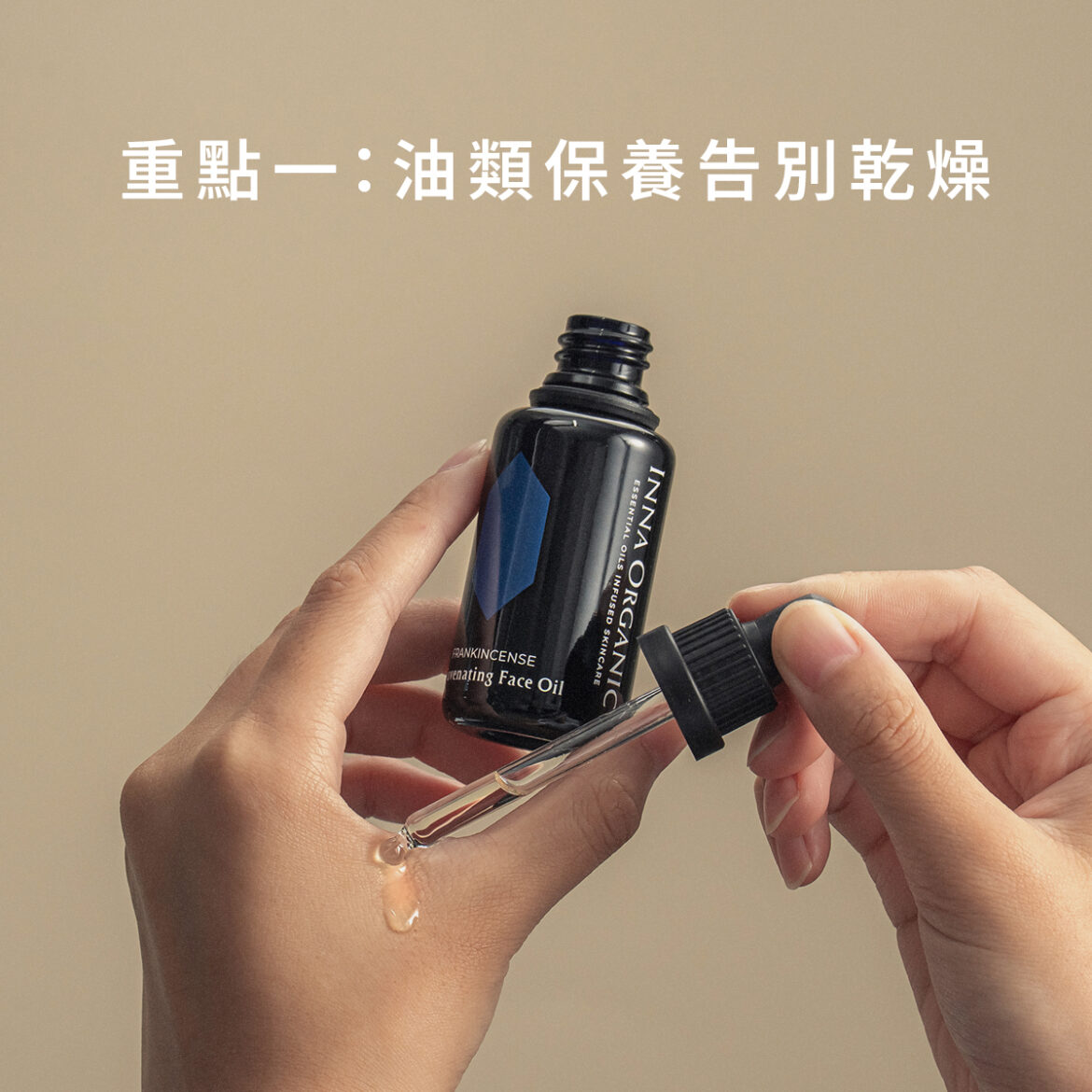 如果當天的行程幾乎都待在室內,建議以針對暖房環境的保養為主。開了暖氣之後,室內會越來越乾燥,就有可能發生肌膚脫皮的危機。我會先用乳香前導醒肌水噴 5-7 下,在臉上水滴尚未乾掉之前,敷上沒藥水潤精油面膜加強補水,最後以乳香緊致馥活油加乳香逆時童顏霜兩者混合使用,來鎖住水分,避免長期待在暖房的肌膚脫皮浮粉。