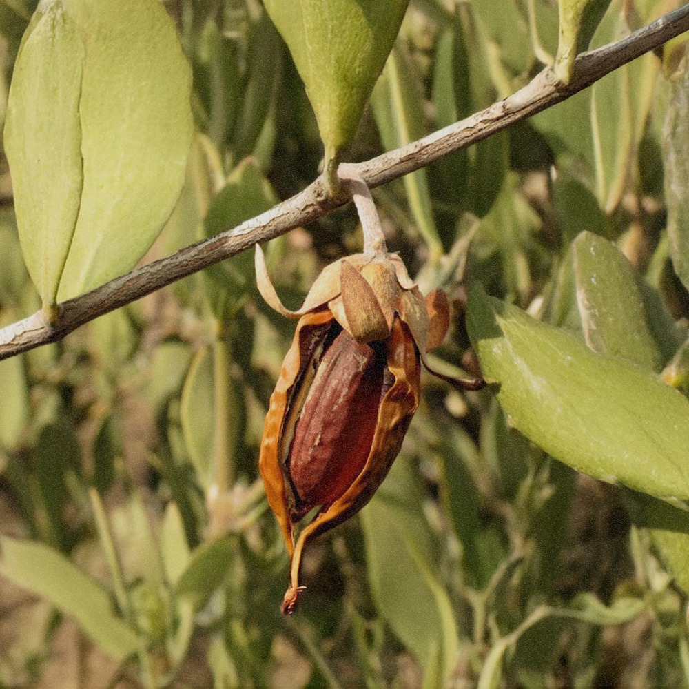 荷荷芭油(Jojoba Oil)萃取自荷荷芭灌木(Simmondsia chinensis)的種子,生長在美國、墨西哥與以色列等沙漠地區,長年面對高溫、乾旱與日夜劇烈溫差的氣候。所以荷荷芭種子為了在惡劣環境中保存水分,自然演化出高比例的「液態蠟酯」來儲存養分。
