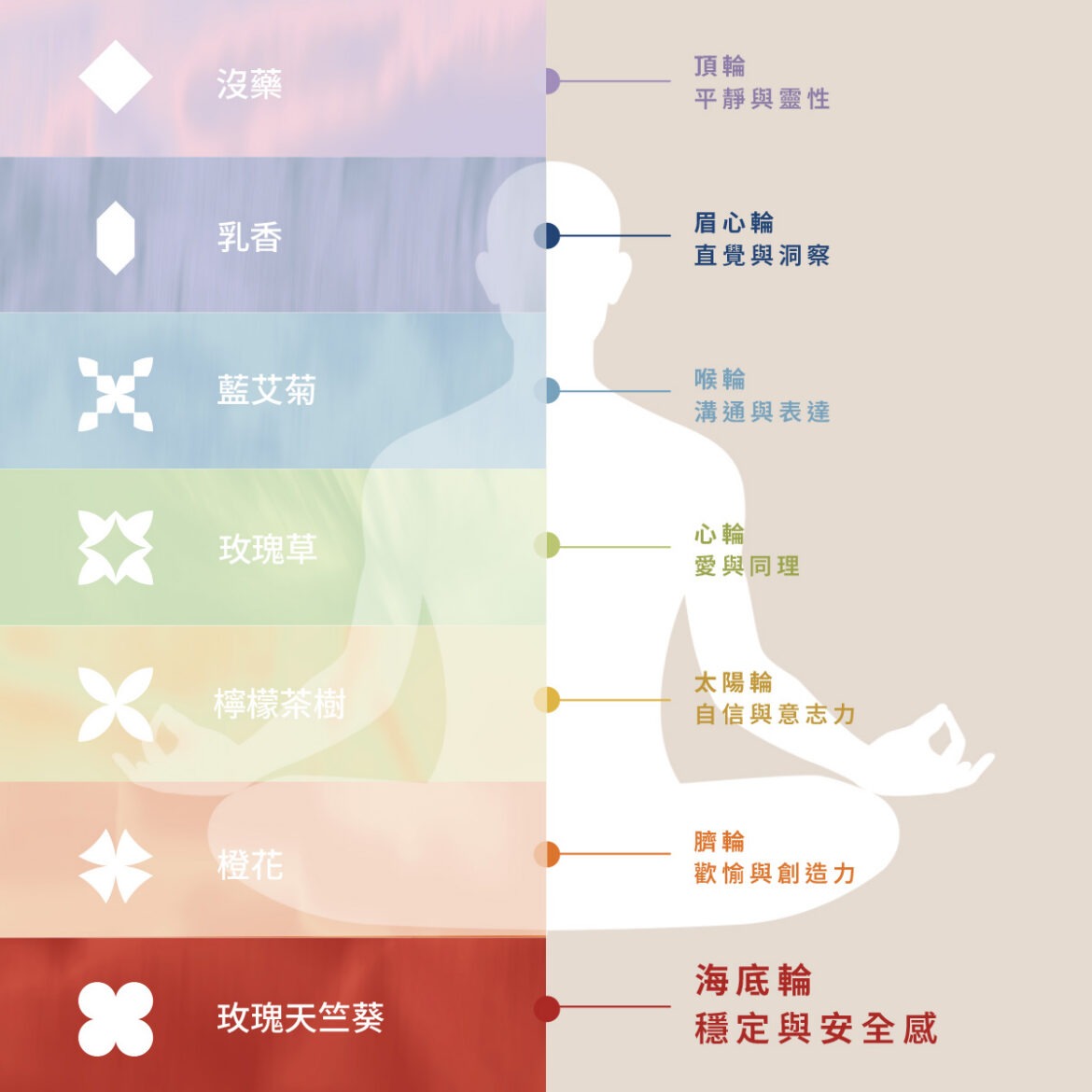 對應人體七大脈輪,玫瑰天竺葵能平衡海底輪能量,給你溫柔的支持,讓人充滿安全感。