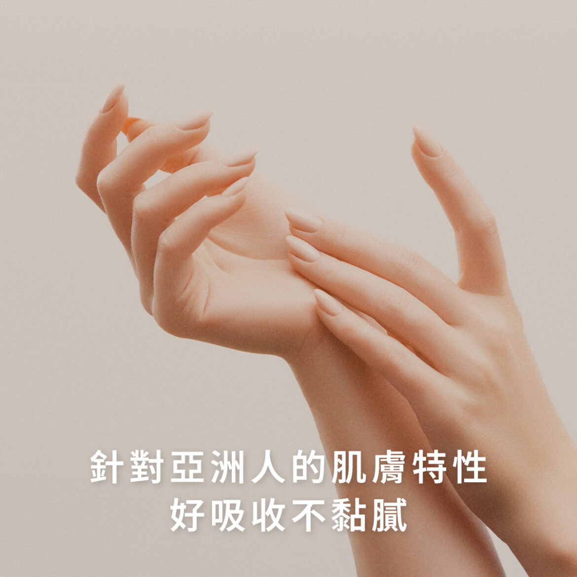 塗抹雙手瞬間吸收,柔潤滋養卻不黏膩,細緻乳霜質地快速滲透