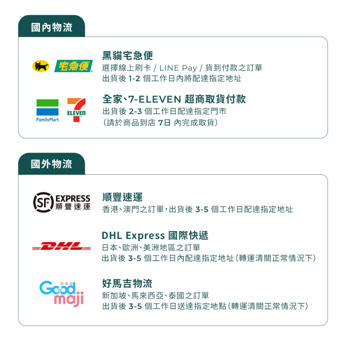 特殊節日或活動期間倉庫與物流業者訂單量大,實際配送狀況依粉絲團公告或電子郵件通知為主