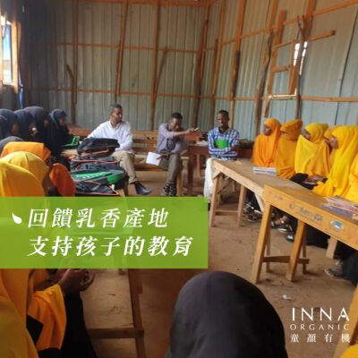 2021 年聖誕節期間,Inna Organic 童顏有機於台灣官網與美國 Amazon 平台推出專屬公益禮盒,「乳香冬日送暖組」禮盒採用精緻木盒包裝,使用索馬利亞小朋友手繪圖作為視覺設計,並將禮盒銷售淨額的 15% 捐給 Street Child,回饋非洲索馬利亞,感謝海內外童學與我們一起點亮非洲孩童的夢想,為兒童教育奉獻心力!