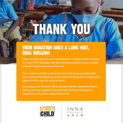 Inna Organic 童顏有機的第一個海外公益合作,選擇幫助海外 Street Child 的兒童
