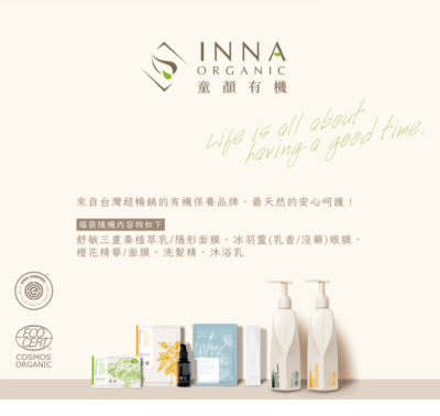 Inna Organic 童顏有機品牌九周年時,10/5 ~ 10/30 特別在台北華山文創園區展出期間限定店!從 Inna 發音類似台語的「囡仔」,加上在南島語系譯為「母親」角度出發,推出由台灣工匠手工製作的限量「 Inna Bear 台灣黑熊玩偶」,期望黑熊玩偶能如母親般溫暖地陪伴孩子們,並將玩偶銷售收益的 8% 用於支持野灣動保協會、1%支持兒童教育,感謝童學們於快閃活動期間的熱情響應,與我們一起關懷台灣野生動物保育和兒童教育。