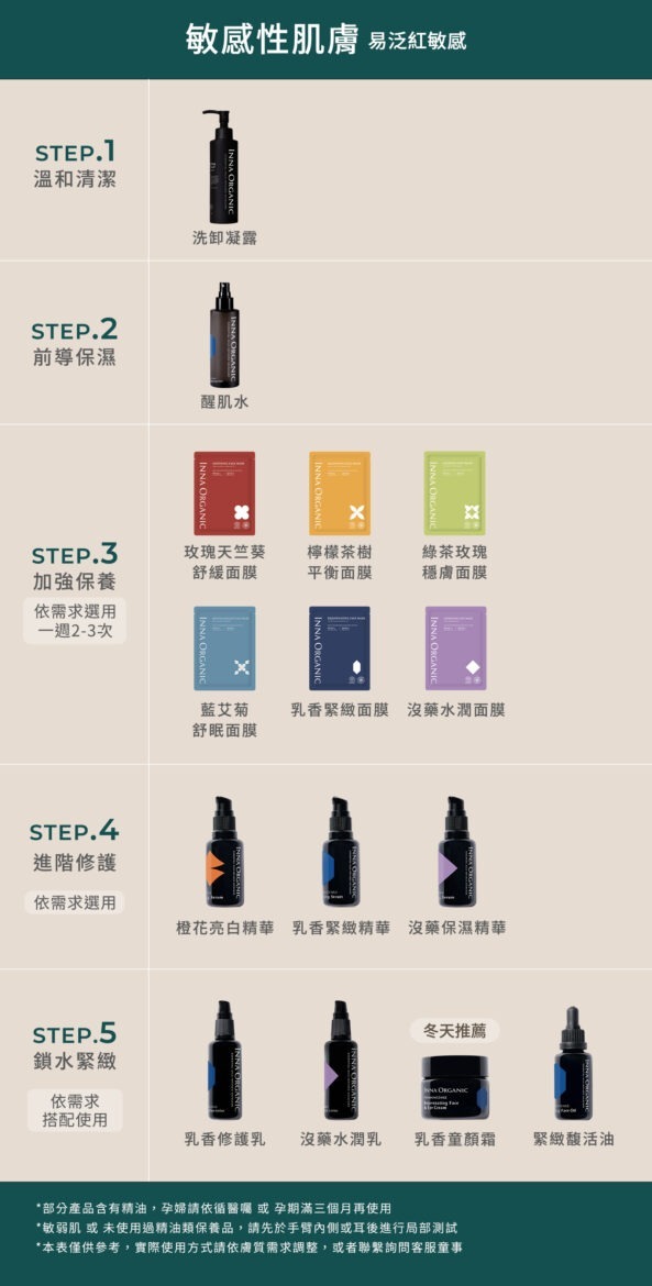 INNA ORGANIC 童顏有機全產品符合美國 EWG 對健康與環境友善標準,精油含量皆經過專業評估,安全無虞。不過,每個人的體質不同,對於精油的敏感程度不一,為了您的安全起見,