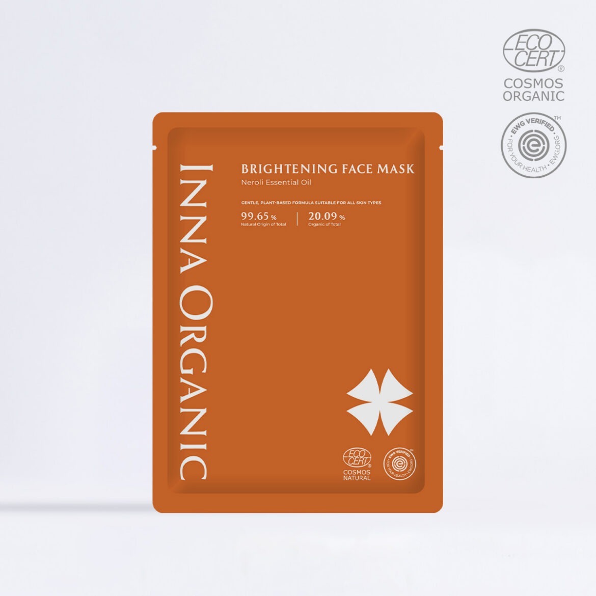 重視產品對環境永續的影響,從原料栽種、製程到包裝,皆嚴格遵循規範,尊重環境和人體健康。Inna Organic 致力取得 COSMOS 天然/有機認證,讓消費者安心選擇對環境與肌膚更友善的產品