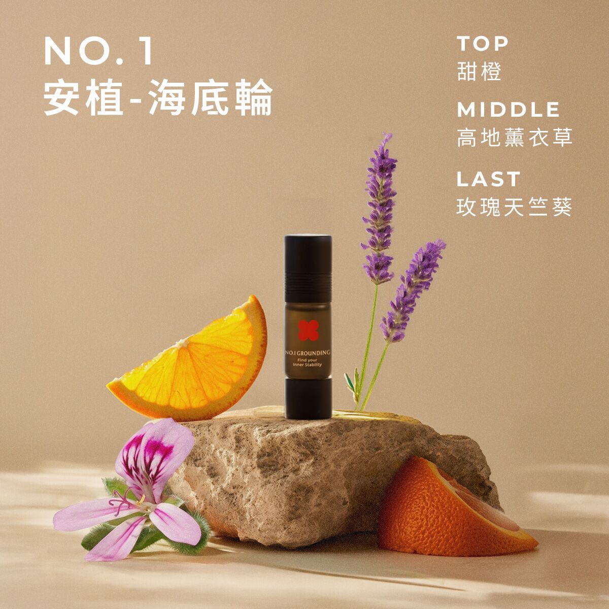 ✔ 感到不安、情緒緊張時,有機甜橙 x 高地薰衣草 x 玫瑰天竺葵的溫柔花香調,帶你回到海底輪的踏實安定