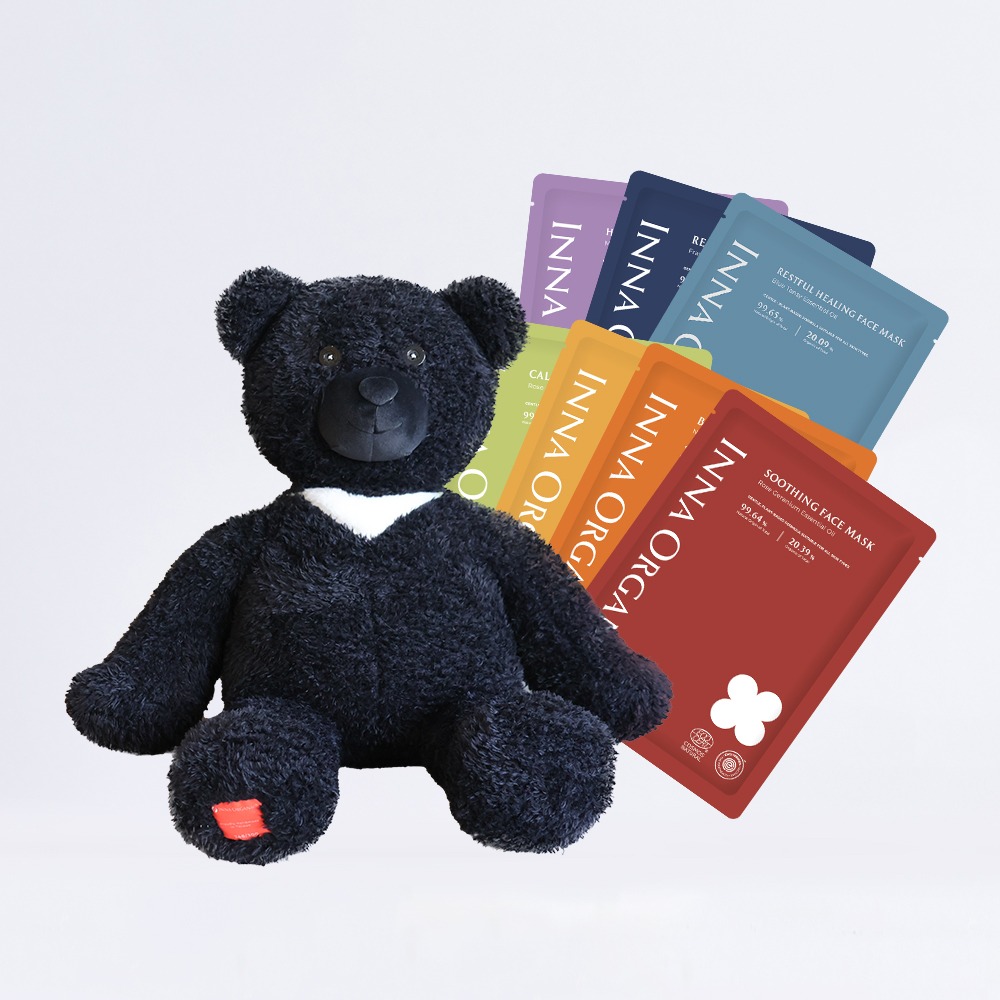 Inna Bear 全新面膜組內含台灣黑熊公仔 + 7 款有機棉精油面膜